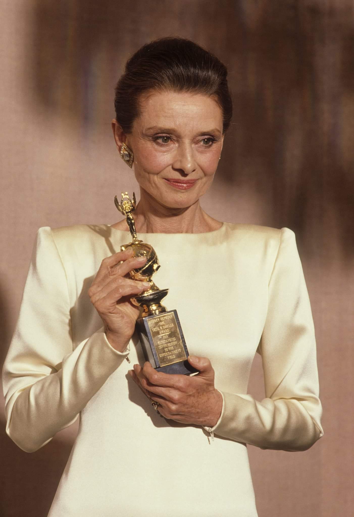 Audrey Hepburn receiving the Cecil B. deMille Award in 1990.